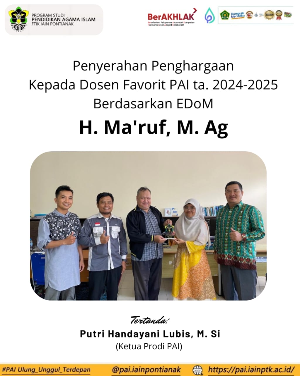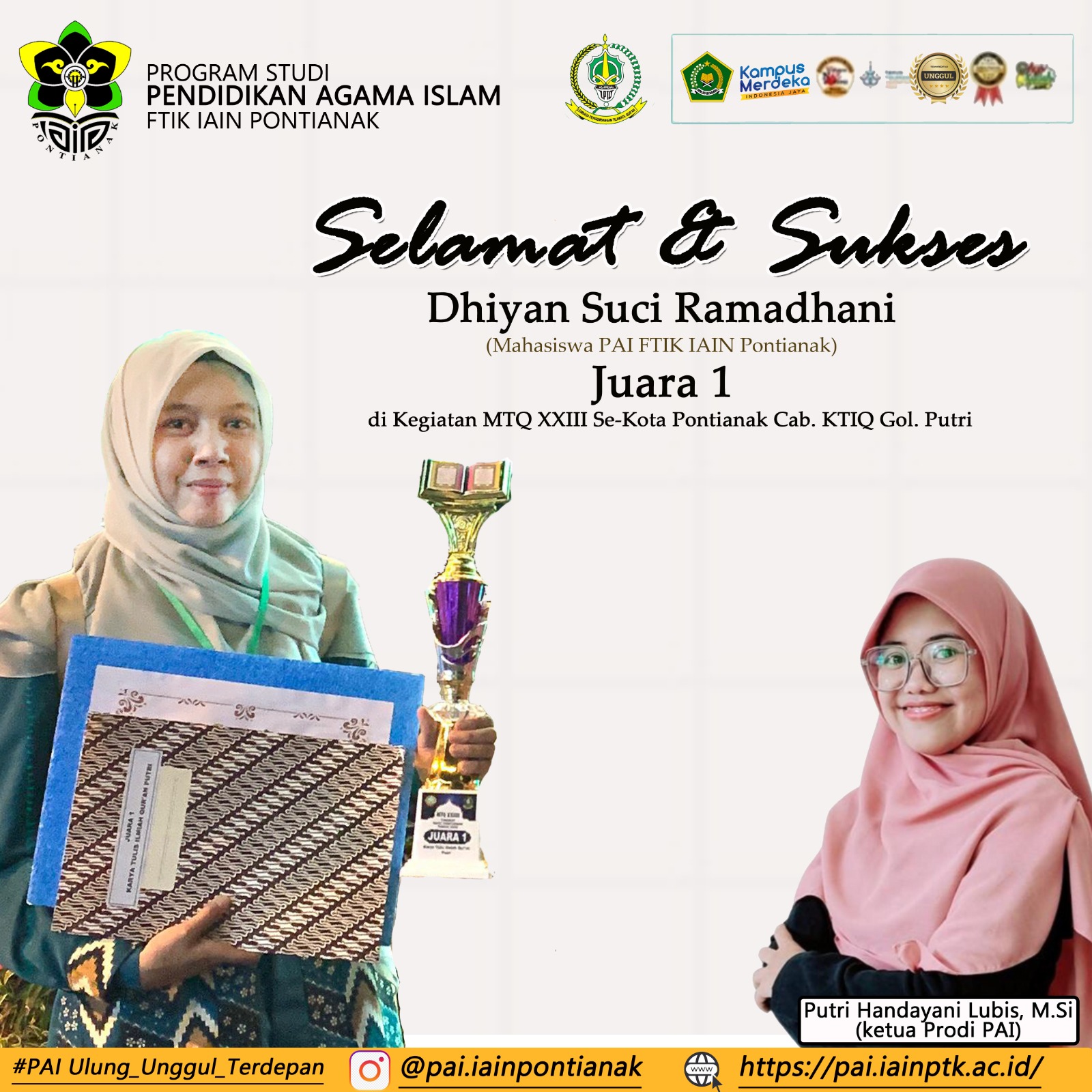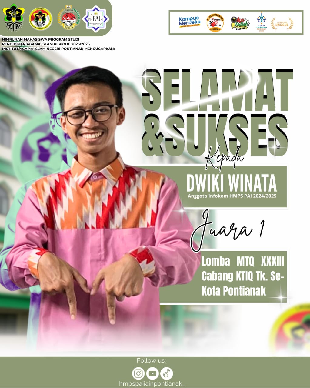 Mahasiswa Program Studi Pendidikan Agama Islam (PAI) di IAIN Pontianak telah menunjukkan prestasi yang membanggakan, terutama di ajang Musabaqah Tilawatil Qur’an (MTQ). Banyak mahasiswa PAI yang berhasil meraih juara dalam berbagai kategori, seperti tilawah, tafsier, dan hifzhil Qur’an, baik di tingkat lokal, dan regional. Keberhasilan ini tidak hanya mencerminkan kemampuan mereka dalam menguasai seni membaca dan memahami Al-Qur’an, tetapi juga menunjukkan kedalaman spiritual dan kecintaan mereka terhadap nilai-nilai agama Islam. Selain itu, prestasi-prestasi tersebut juga menunjukkan kualitas pendidikan di Prodi PAI yang mampu membentuk individu dengan kemampuan akademik dan keagamaan yang seimbang. Mahasiswa PAI IAIN Pontianak terus berkomitmen untuk berkontribusi dalam memperkuat ukhuwah Islamiyah dan memperdalam pemahaman umat terhadap ajaran Al-Qur’an. Prestasi-prestasi ini menjadikan mahasiswa PAI IAIN Pontianak sebagai inspirasi bagi generasi muda untuk terus mengembangkan potensi diri dalam bidang keagamaan, sekaligus memperkuat citra positif prodi di mata masyarakat.