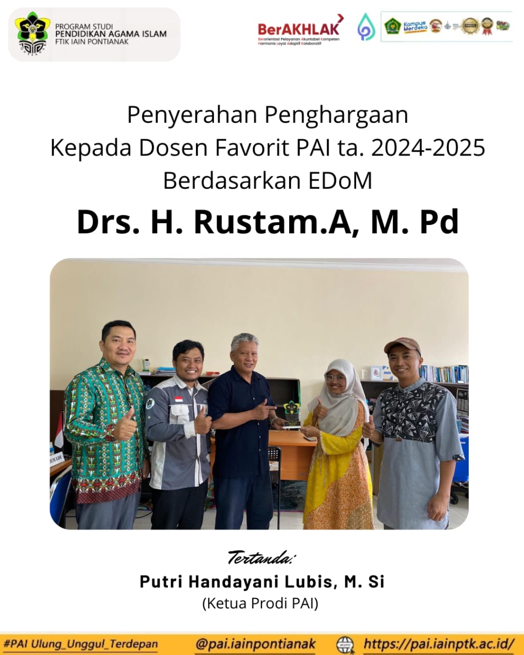 Mahasiswa Program Studi Pendidikan Agama Islam (PAI) di IAIN Pontianak telah menunjukkan prestasi yang membanggakan, terutama di ajang Musabaqah Tilawatil Qur’an (MTQ). Banyak mahasiswa PAI yang berhasil meraih juara dalam berbagai kategori, seperti tilawah, tafsier, dan hifzhil Qur’an, baik di tingkat lokal, dan regional. Keberhasilan ini tidak hanya mencerminkan kemampuan mereka dalam menguasai seni membaca dan memahami Al-Qur’an, tetapi juga menunjukkan kedalaman spiritual dan kecintaan mereka terhadap nilai-nilai agama Islam. Selain itu, prestasi-prestasi tersebut juga menunjukkan kualitas pendidikan di Prodi PAI yang mampu membentuk individu dengan kemampuan akademik dan keagamaan yang seimbang. Mahasiswa PAI IAIN Pontianak terus berkomitmen untuk berkontribusi dalam memperkuat ukhuwah Islamiyah dan memperdalam pemahaman umat terhadap ajaran Al-Qur’an. Prestasi-prestasi ini menjadikan mahasiswa PAI IAIN Pontianak sebagai inspirasi bagi generasi muda untuk terus mengembangkan potensi diri dalam bidang keagamaan, sekaligus memperkuat citra positif prodi di mata masyarakat.